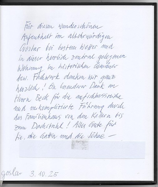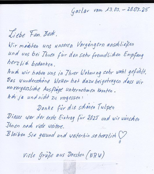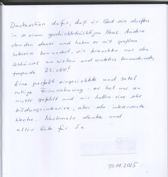 In unserer Ferienwohnung liegt ein Ferienbuch aus. Die Gäste können positive wie negative Kritik dort schriftlich fixieren.